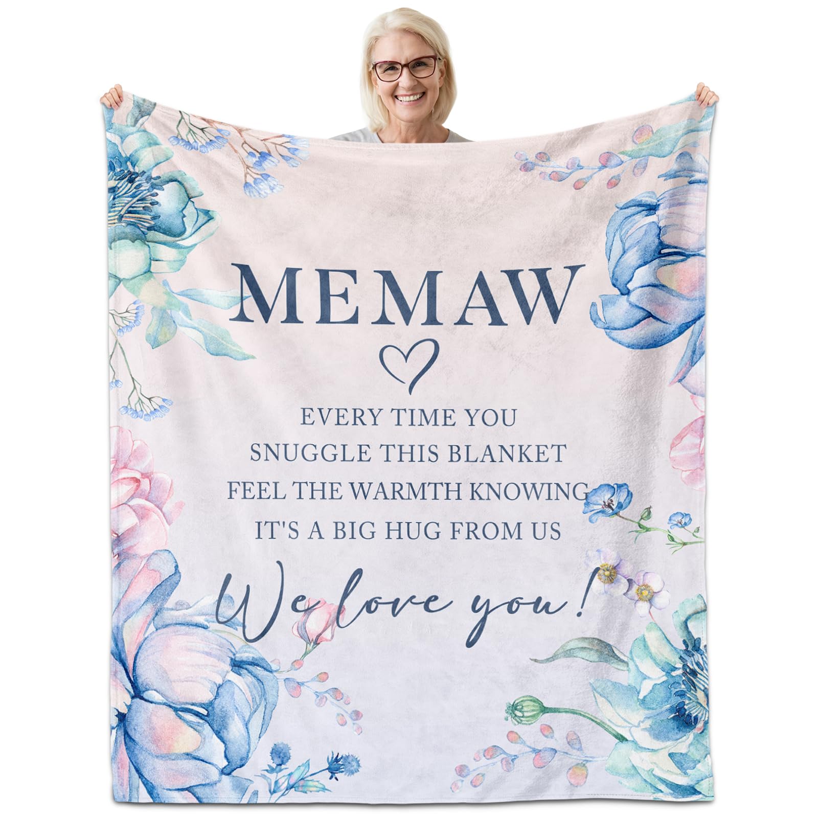 Give Your Beloved Memaw a Heartfelt Embrace with This Beautifully Designed 60" X 50" Blanket. The Soft, Cozy Throw Features an Elegant Watercolor Floral Design in Soothing Blues and Pinks, Perfectly Framing a Touching Message of Love. The Delicate Botanical Pattern Includes Gentle Roses, Tender Buds, And Graceful Leaves That Create a Serene and Feminine Aesthetic. This Thoughtful Gift Serves as a Constant Reminder of Your Affection, With Its Heartwarming Message "Every Time You Snuggle This Blanket, Feel the Warmth Knowing It's a Big Hug from Us." Perfect for Birthdays, Mother's Day, Christmas, Or Any Special Occasion When You Want to Show Your Nana Just How Much She Means to You. The Generous Size Makes It Ideal for Curling up with a Good Book or Staying Warm During Evening TV Time. This Meaningful Keepsake Will Bring Comfort and Joy to Any Grandmother, Making Her Feel Loved and Appreciated Every Time She Wraps Herself in Its Warmth
