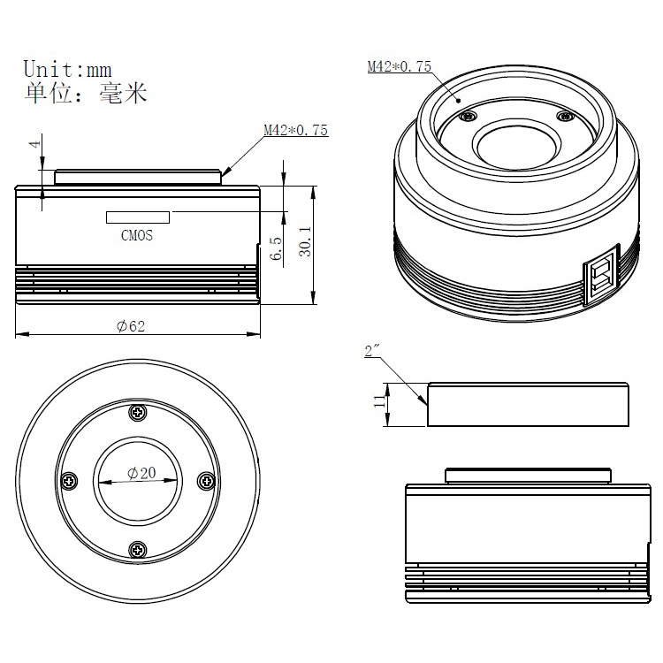 Manufacturer Part Number: ASI74MC Product carries a 1 year manufacturer warranty against mechanical defects (within USA only). This camera can be configured with the following connections for attachment to telescopes and imaging