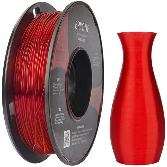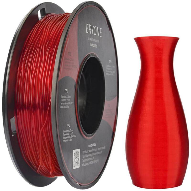 ERYONE TPU Filament is a high quality TPU Filament, excellent for making bendy models. Made from high quality virgin plastic and with strong colours, supplied in vacuum packaging for freshness. Wound to prevent tangles, tight tolerance control and quality material ensures great prints everytime. Suits most FDM 3D Printers from Creality 3D, Artillery, SUNLU, Geeetech, XVICO, Eaythreed and more. Quality is at the heart of ERYONE, Founded in 2018, Headquartered in Shenzhen, the heart of Chinese Electronics, ERYONE benefits from direct access to raw material suppliers and young talent. Features: Minimum Tolerance | Low Warping | Ensure Consistent Feeding and Stable PrintsMinimum tolerance and low warping to ensure consistent feeding and stable prints, No clogging, extremely high successful rate, resulting in printed parts that have an outstanding surface finish and are highly precise. Purest-grade Material | Made in USA | Non Toxic and Limited SmellERYONE filaments are 100% Made in the USA with virgin materials, Biodegradable and Eco-friendly, NO harm to user and environment. Ideal for indoor printing. Professional Packaging | Vacuumed SealedERYONE is supplied in a sealed vacuum bag with a desiccant bag to keep it dry and keep out dust and foreign particles, prevent nozzle jams and yield smooth 3D models. High CompatibilityCompatible with 3D Printers that use 1.75MM filament, Such as:Prusa,Makerbot,etc. Our filaments had been tested on various brands of 3D printer in the market and with positive customers' feedback. Specifications: Filament Diameter: 1.75mm Tolerance: ± 0.05mm Print Temperature: 190-220°C Recommended Print Speed 15-30mm/s Produced mainly from Corn Starch, eco friendly material. Net Weight: 0.5kg / 500g (inc spool) FAQ: Clogging: Clogging is caused by uneven wire diameter or too low a temperature. Clean the nozzle before use and raise the temperature to reduce the chance of clogging. Stringing: If the temperature is too high, the flow of PLA is too fast, or the feed parameters are not set properly, wire stringing will be caused. Reducing the temperature and speed corrections will solve these issues. Over Extrusion: Too high a temperature, too slow speed, or nozzle diameter in the section does not match will cause too much extruding at the nozzle outlet, and there will be residual material.