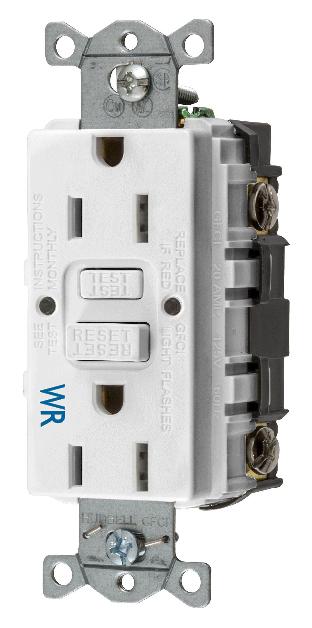 Bryant Electric GFWRST15W 15 Amp 125V Commercial/Residential Self Test Weather Resistant Duplex GFCI Receptacle, White