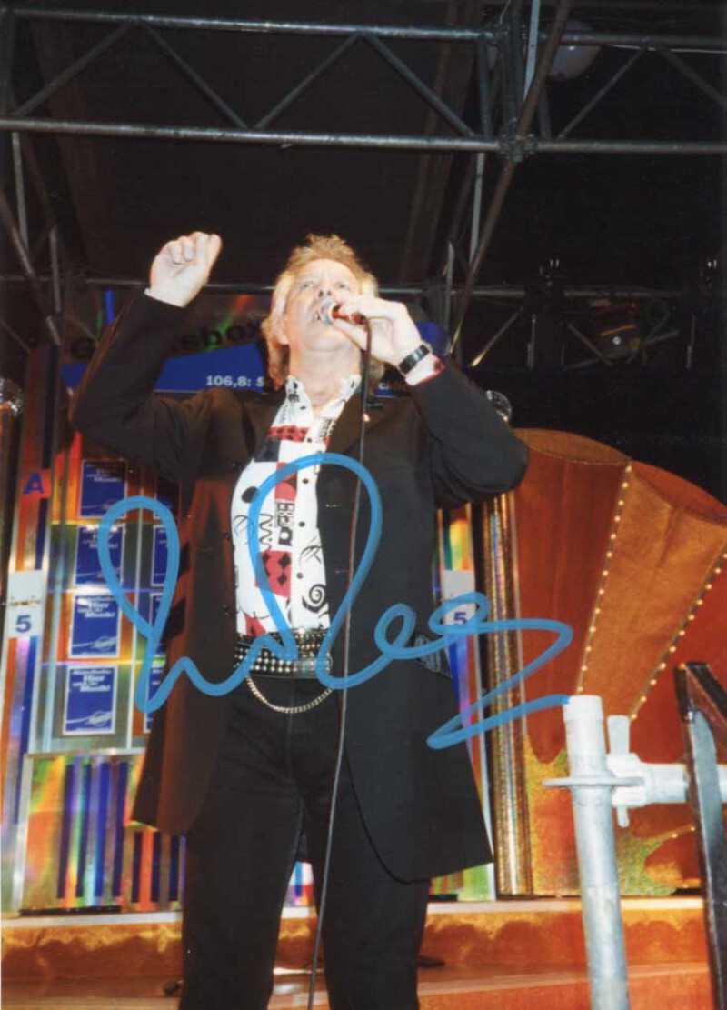 Signed photograph, shows Dave Dee on stage, 5 x 7 inch, signed in blue felt tip, in very fine condition.