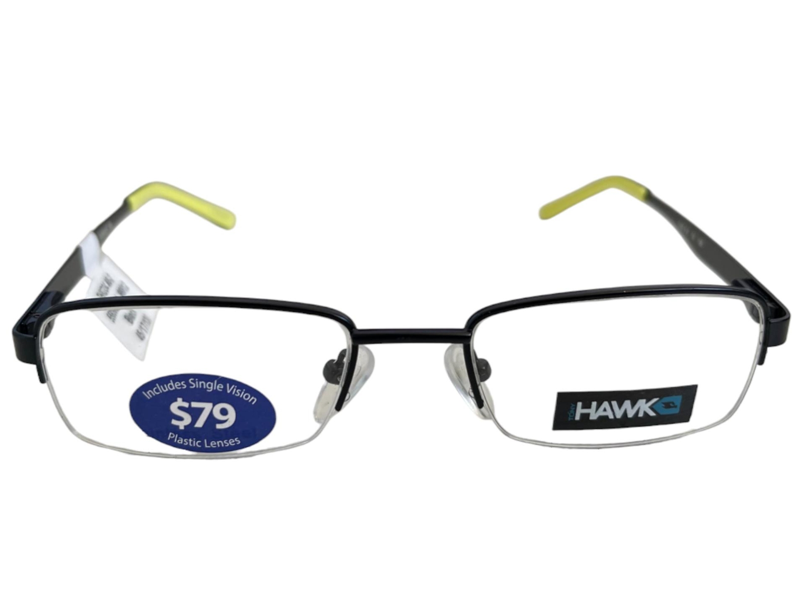 Hawk Boys Youth Eyeglass Frames THK 4-2 Black Yellow Half Rim Size 45-17-130