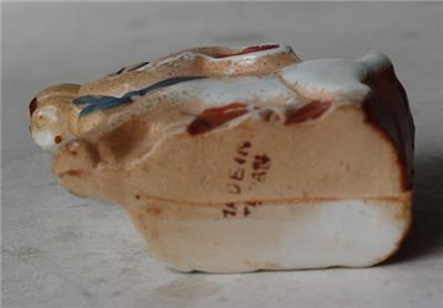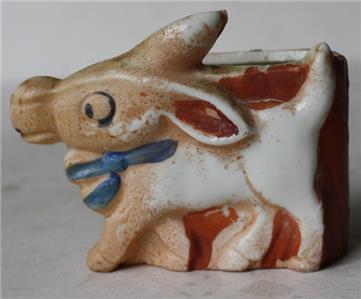 Here is a great vintage ceramic porcelain hand painted Made in Japan Miniature Donkey Mule Burro with Blue Ribbon Toothpick Holder Figurine. It is Awesome. It is marked Made in Japan on bottom-SEE ALL PHOTOS. It measures about 2 inches tall by about 2 1/2 inches long. Grab this great vintage collectible while you still can it will not last long.