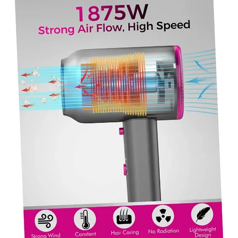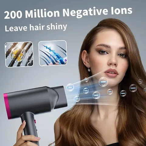 The hair dryer has overheat protection for peace of mind. Unleash the high-power performance for fast and effective drying. Plus, the built-in negative ions technology ensures a frizz-free finish and leaves your hair radiantly smooth.