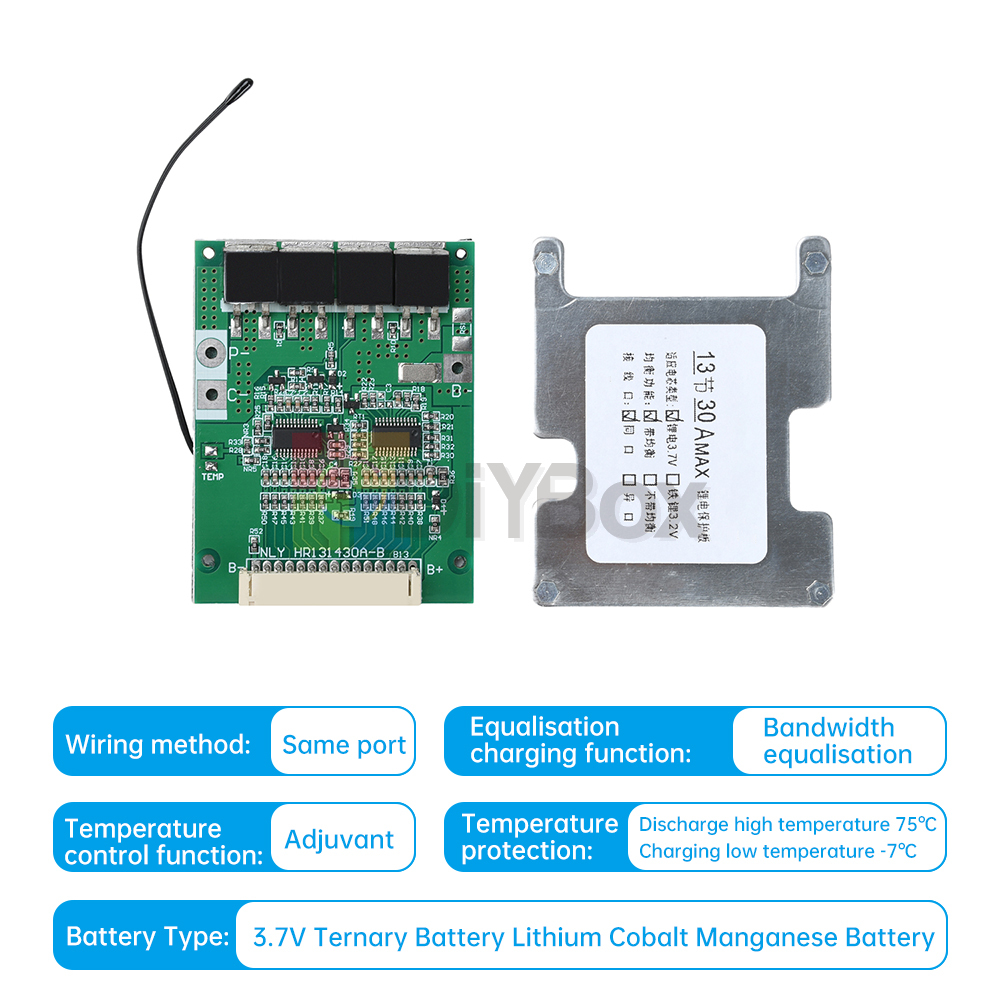 13S 48V 30A 18650 Li-ion Battery Protection Board BMS with Balance for E-Bike