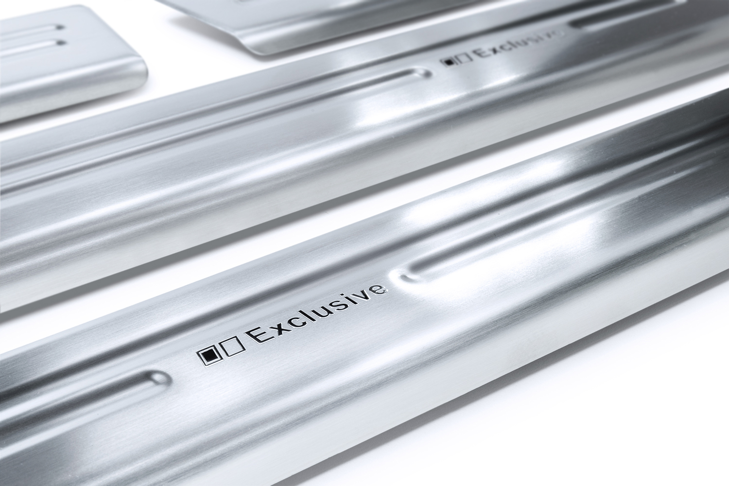 Unsere neuen "Exclusive" Design Einstiegsleisten sind inklusive Schriftzüge komplett aus Edelstahl gefertigt. Die rundum Micro-Abkantung verstärkt die Form zusätzlich, reduziert die Montage-Abstände auf ein Minimum und wertet die Einstiegsleisten optisch auf. Qualität direkt vom Hersteller!