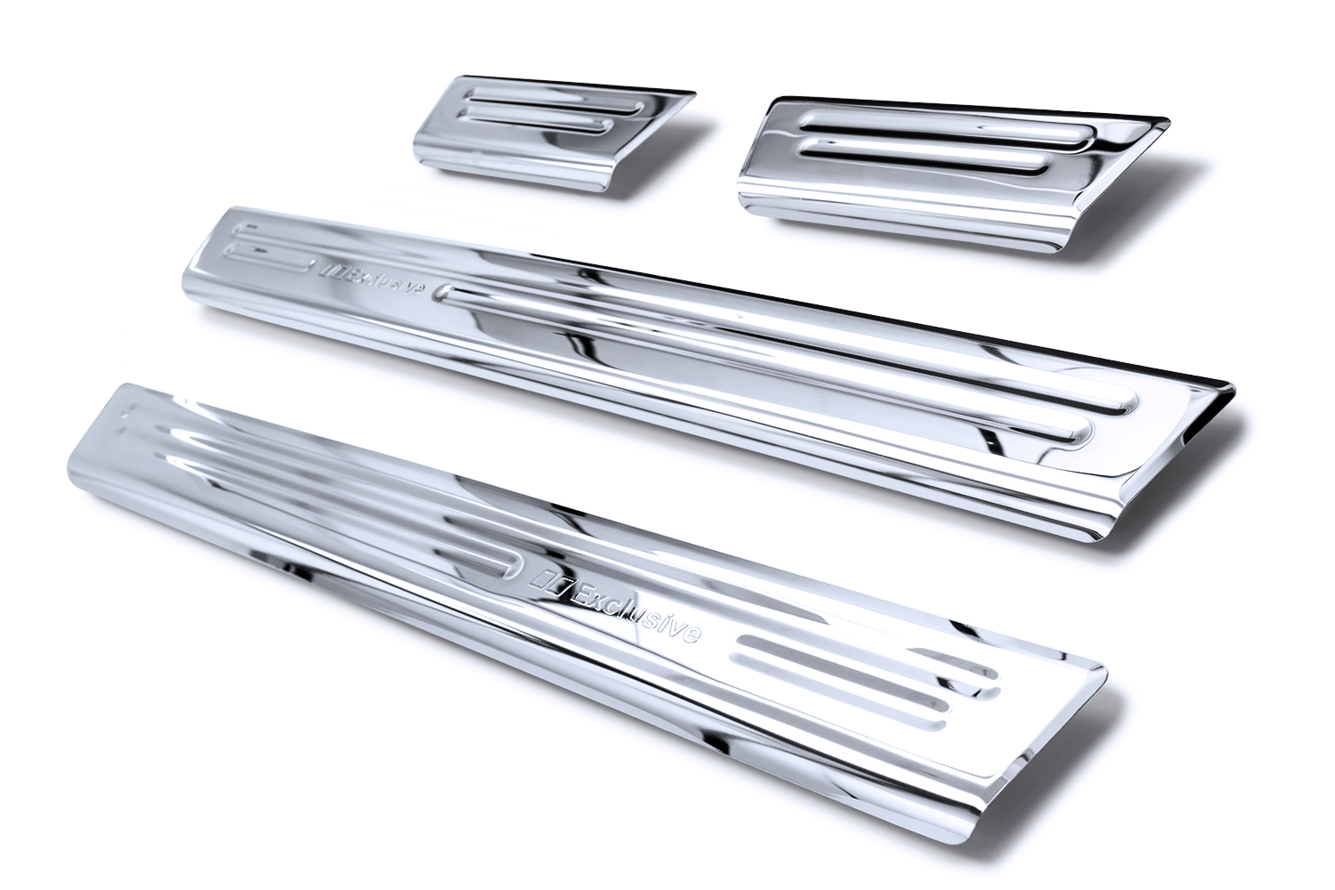 Unsere neuen "Exclusive" Design Einstiegsleisten sind inklusive Schriftzüge komplett aus Edelstahl gefertigt. Die rundum Micro-Abkantung verstärkt die Form zusätzlich, reduziert die Montage-Abstände auf ein Minimum und wertet die Einstiegsleisten optisch auf. Qualität direkt vom Hersteller!