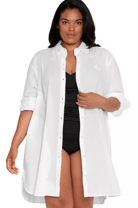 Lauren Ralph Lauren offers a versatile maxi shirt that transitions effortlessly from the beach to the boardwalk. This button-down shirt features a fold-collar and button closures, crafted from 100% cotton. It's hand-wash only and imported. Enjoy a stylish look that's perfect for various occasions.