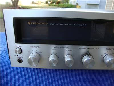 This auction is for a great condition vintage Kenwood AM/FM Stereo Receiver. Model # is KR-4400 This was one of Kenwood's Vintage Stereo receiver models. Awesome machine for the vintage audiophiles. Recently cleaned all of the pots. All lamps were upgraded to LED bulbs. Tested unit before listing ..... works great. Absolutely amazing sound. This machine is "The little engine that could". Awesome operational and cosmetic condition.... may still show minor blemishes from use. See Pictures. This Thing ROCK !!!.... Don't sleep on this one. This is an absolute must for any music lover in the market for a vintage gear.