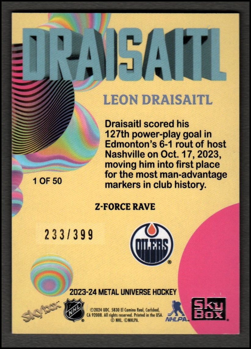 2023-24 Metal Universe Z-Force Rave #1OF50 Leon Draisaitl 233/399 - NM-MT