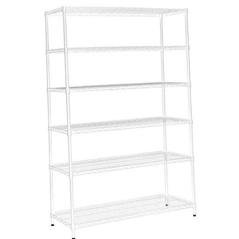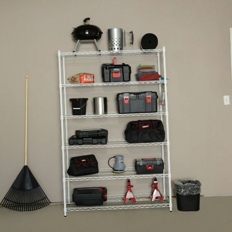 The Hyper Tough 6-Tier Heavy Duty White Wire Shelving Unit offers robust steel construction with a 600-lb weight capacity per shelf, ideal for organizing garages, basements, or storage rooms. Featuring six adjustable shelves with a compact 1 ft depth, this freestanding unit provides versatile storage solutions for tools, supplies, and essentials. Easy to assemble and durable, it enhances space efficiency while supporting heavy loads reliably.