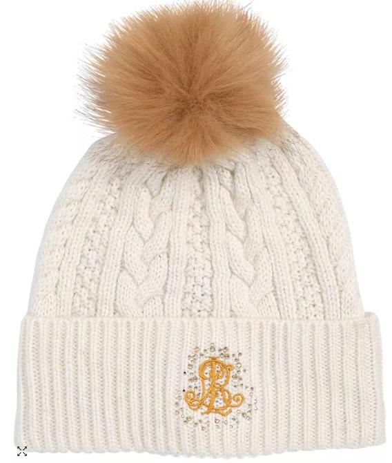 Lauren Ralph Lauren Stone Logo Cuff Hat with Pom Cream OS