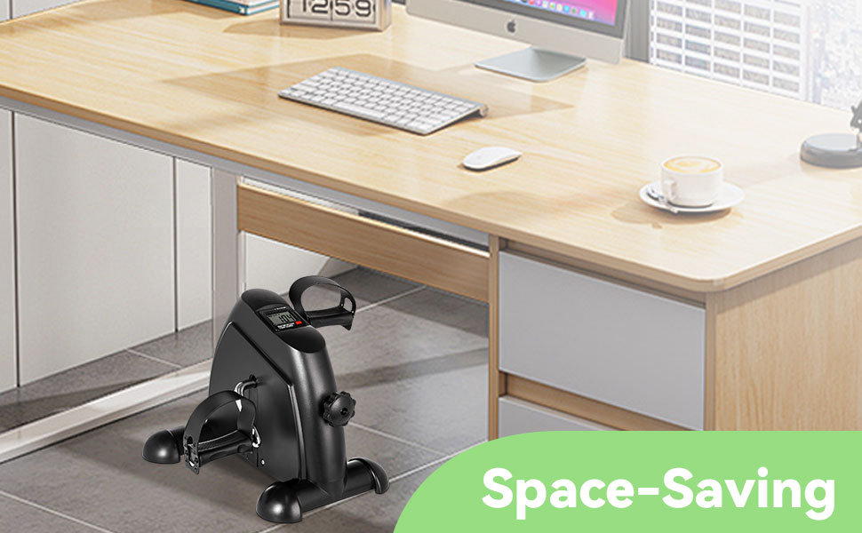COMPACT MINI BIKE: At 12.6 inches (32cm) tall, this mini pedal exerciser slides under most desks. For comfortable pedaling, a desk height of at least 28 inches (71cm) is recommended. Users under 5.3 ft tall need 28–29 inches, while those over 5.7ft tall may require 30 inches or higher