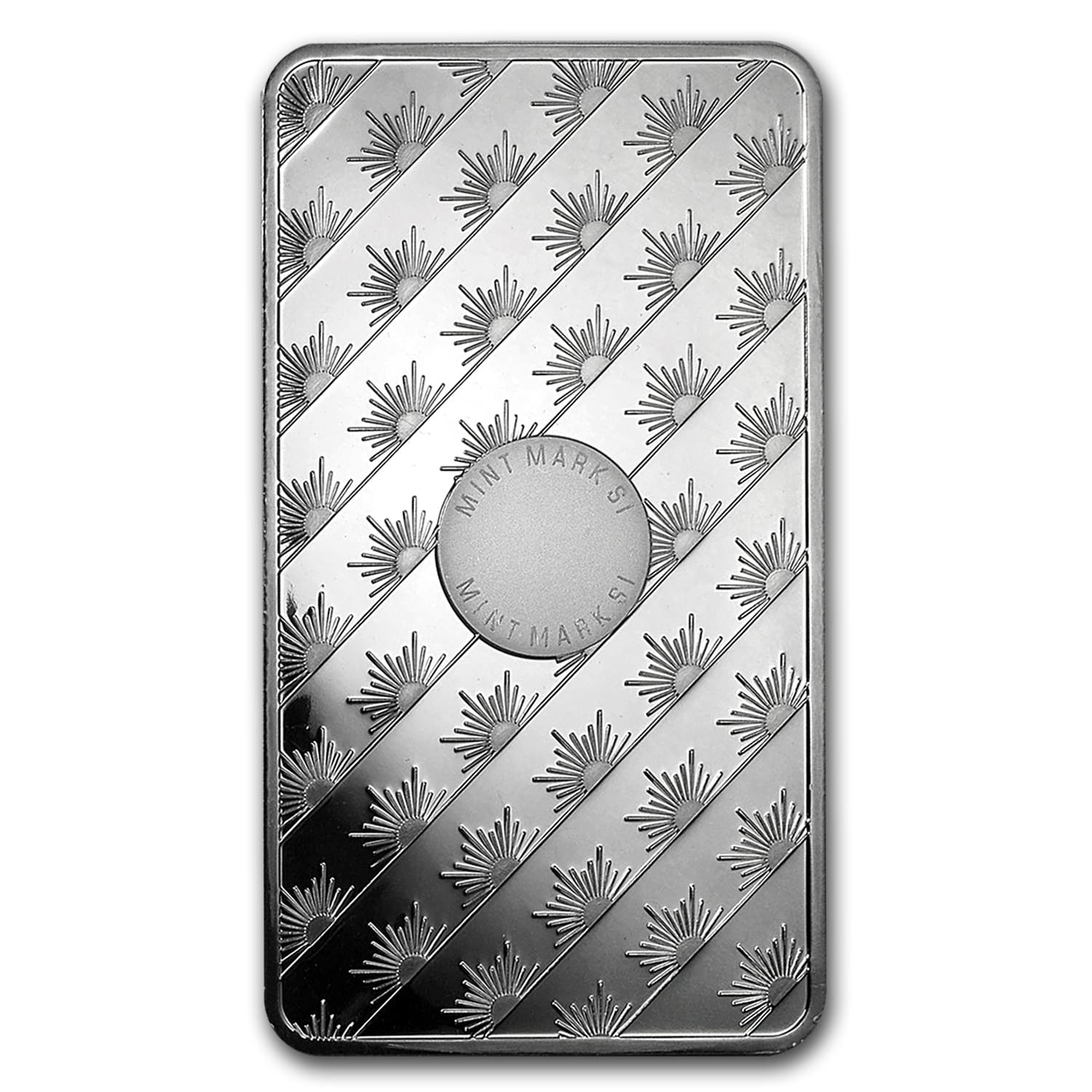 - Reverse: A repeating pattern of rising suns with the Mint Mark SI feature in the center.