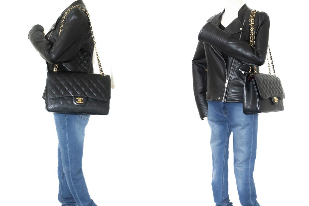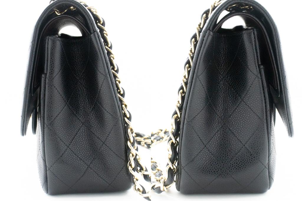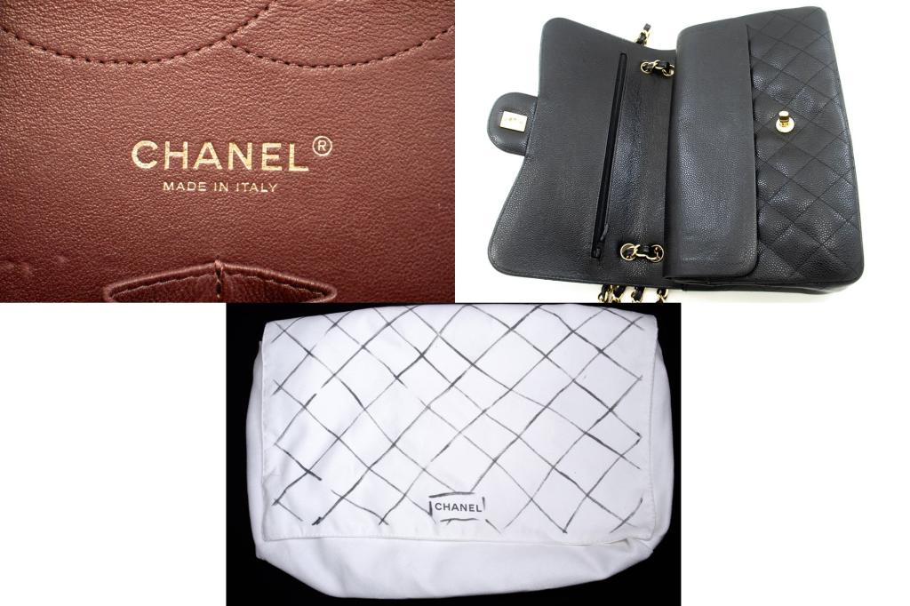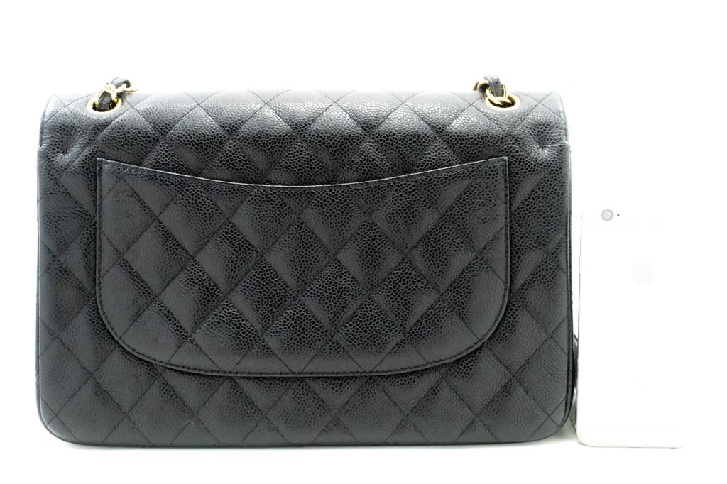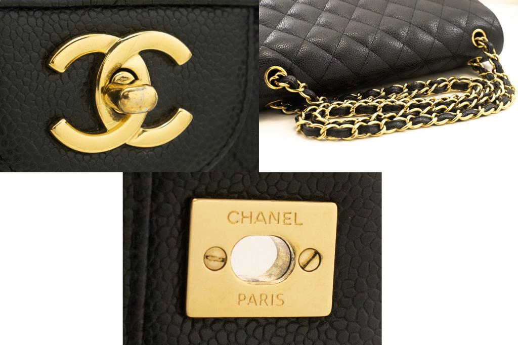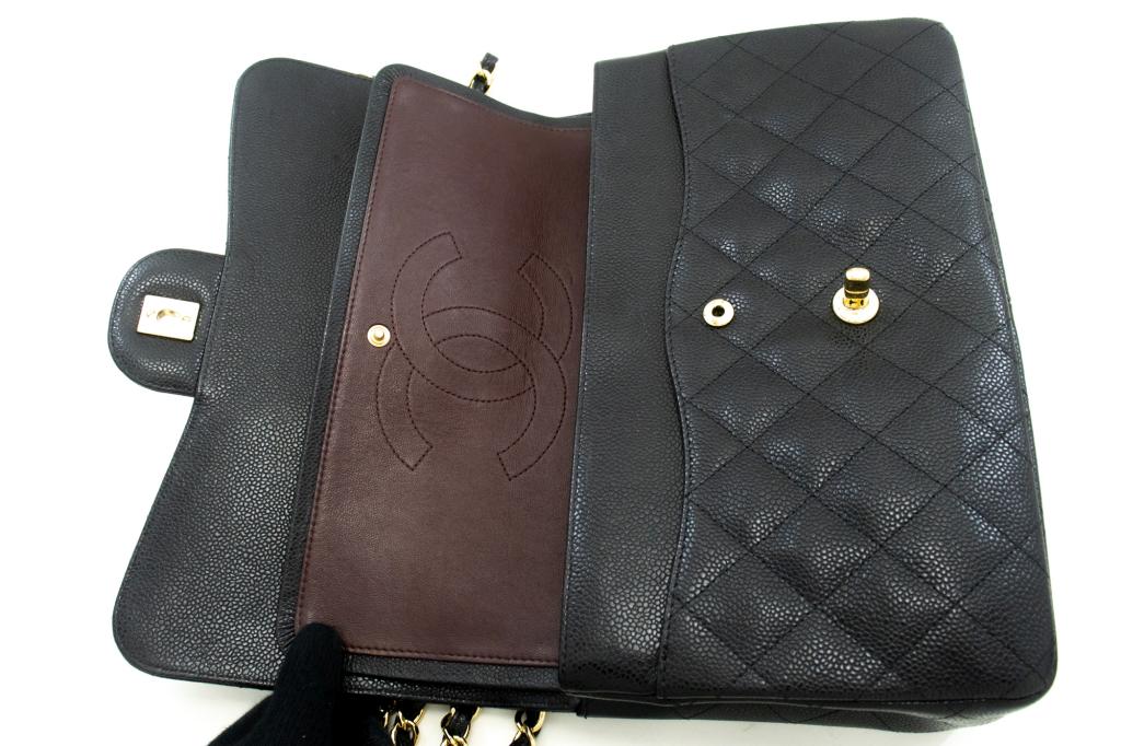 L65 CHANEL Authentic Classic Large 11" Chain Shoulder Bag Double Flap Black Caviar Leather Quilted Crossbody