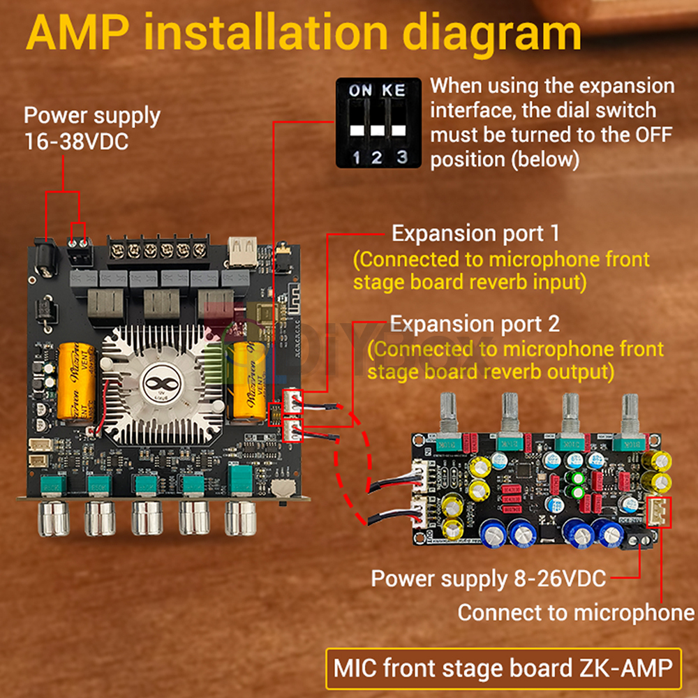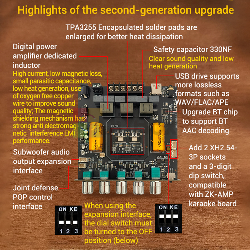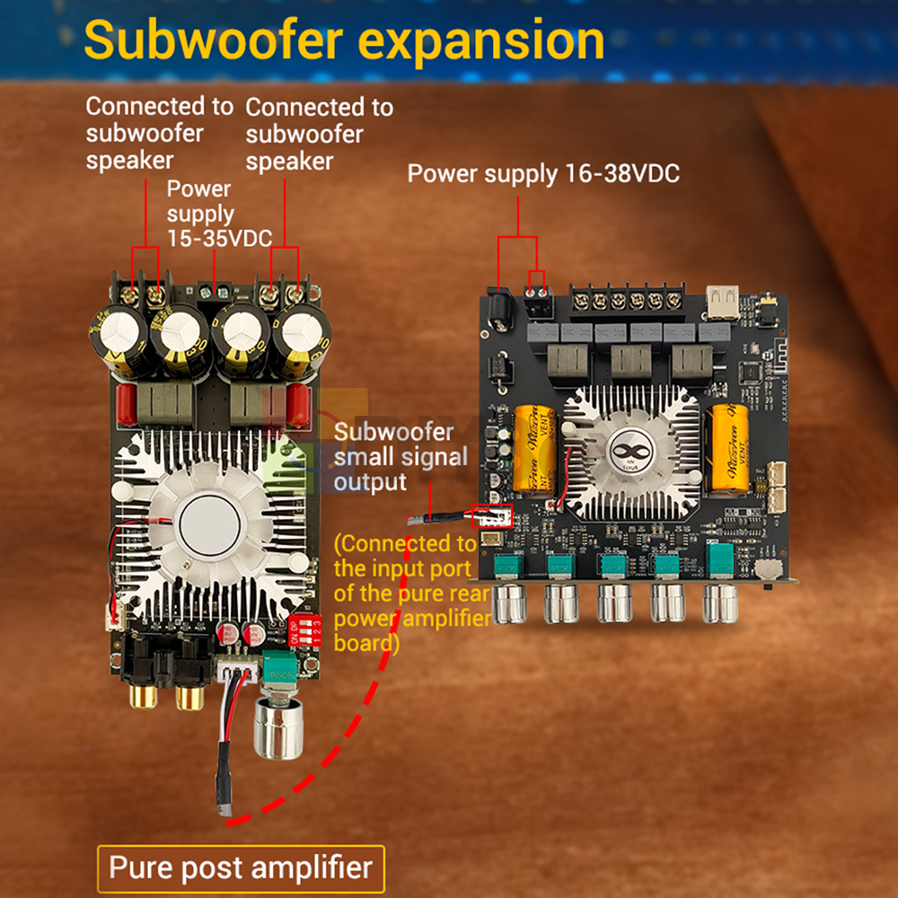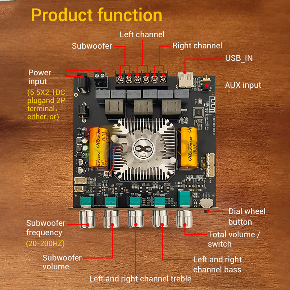 ZK-AS21 2.1 Channel Bluetooth Power Amplifier Board Module TPA3255 Subwoofer AUX