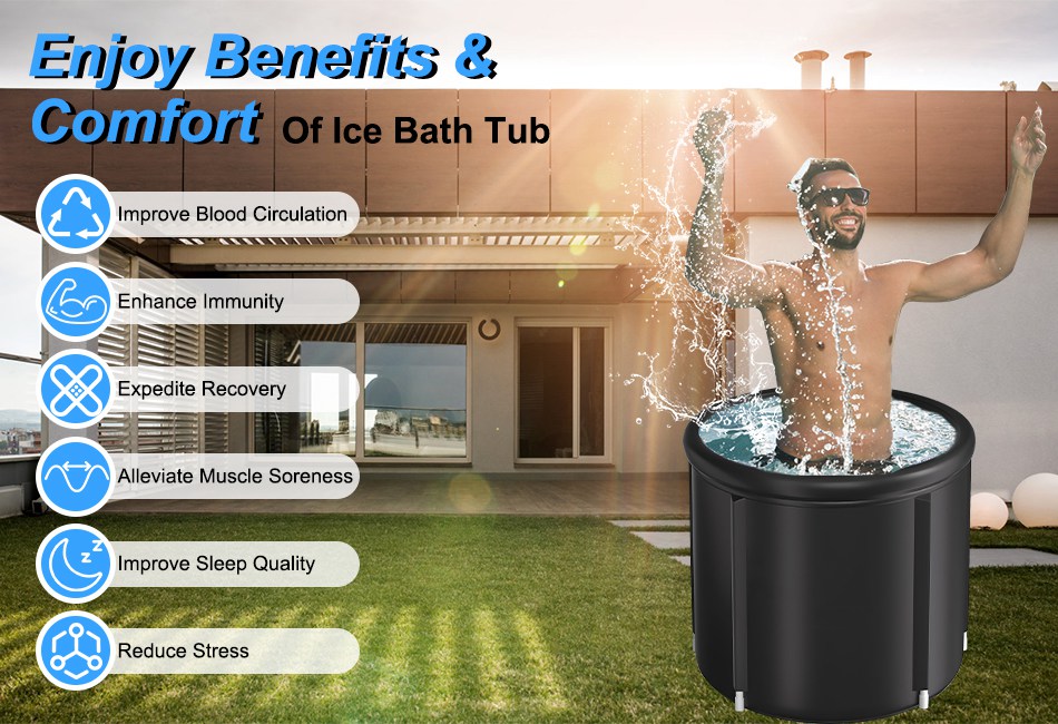 - Ice Bath Therapy & Recovery:Especially designed for athletes and ice bathers,this ice bathtub offers a convenient solution for you to enjoy benefits and comfort of cold water therapy. It proves beneficial in expediting recovery time,alleviating muscle soreness,enhancing recovery efficiency,and boosting immunity,enabling you to better maintain focus on your training program for the following day.