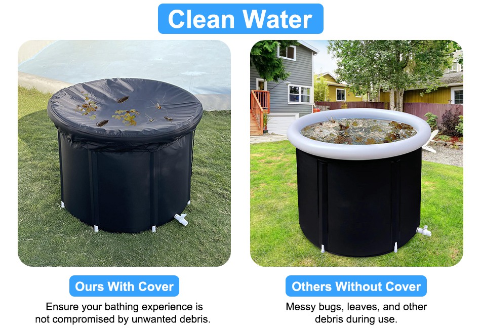 With 370L/97Gal large capacity, this large ice bathtub is suitable for most adults with the height under 6.7ft and provides ample space for immersion in cold water therapy. Featured with 5-layer insulation system and sturdy construction, our ice water bath tub can not only prolong your ice therapy experience, but also provides 660lbs load capacity and enduring lifespan. Protective cover prevents any interruption by unwanted debris, like leaves and bugs. Easy installation and portable design make this spacious ice bathtub perfect for home, gym, camping, RV and so on.