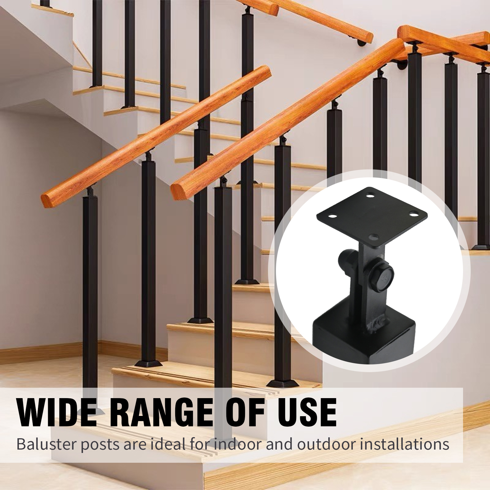 ADJUSTABLE ANGLE BRACKET: 270° rotatable bracket with flexible rotation to accommodate steps of different heights; match your favorite wood and iron handrails