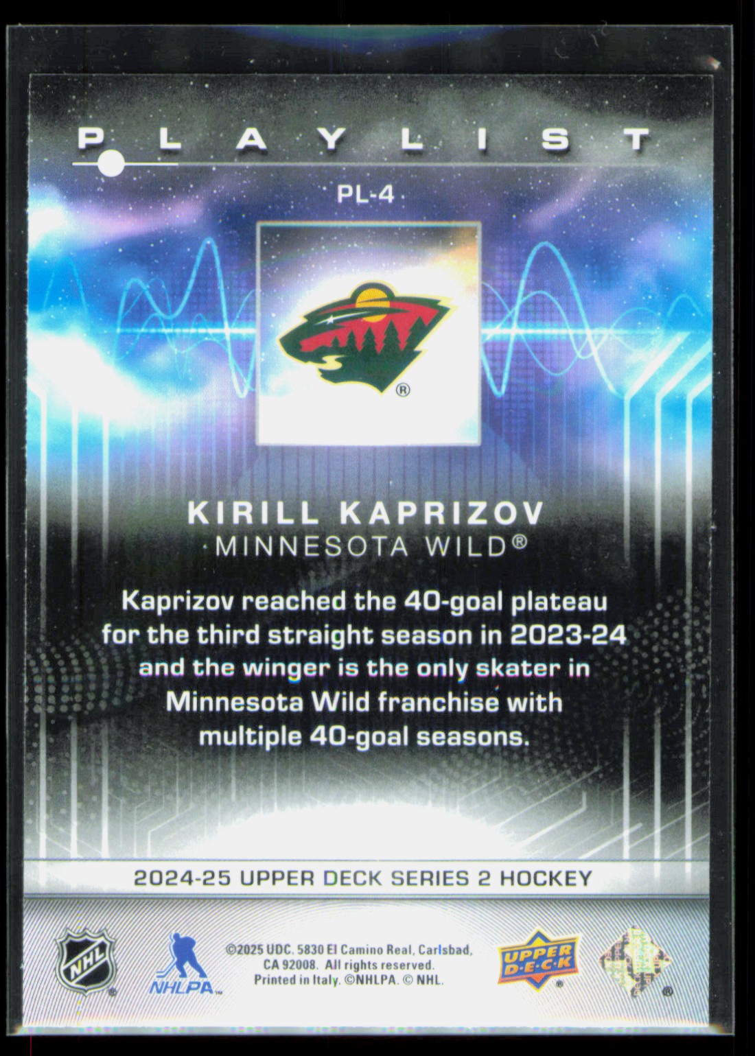 | 2024-25 Upper Deck Series 2 Playlist Kirill Kaprizov #PL-4 | ||||||||||||||||