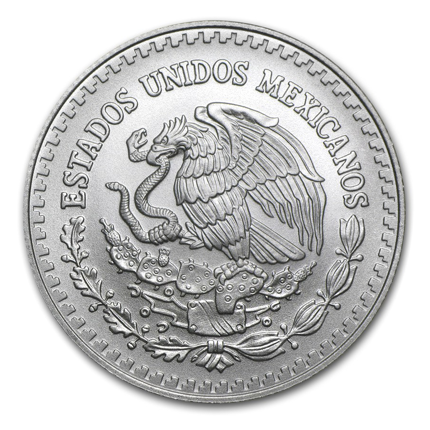 The Mexican Silver Libertad honors the legend of two Mexican volcanoes in the background of the reverse. According to a pre-Columbian legend, a warrior named Popocatépetl fell in love with Iztaccíhuatl, a kings daughter, and earned a tentative marriage blessing from the king on the condition that he win a battle against a rival tribe. While the battle delayed the warrior, a rival suitor started a rumor that Popocatépetl had been killed in the battle, and the fair maiden died of a broken heart. Upon finally returning as the victor from the battle, Popocatépetl discovered the fate of his lover and buried her on top of a mountain range that assumed the shape of a sleeping woman in honor of the dead maiden. Grief-stricken, Popocatépetl climbed an adjacent mountain in order to keep eternal watch over his beloved. Today, the depiction of the volcanoes on the Silver Libertad coin still tells the lovers story.