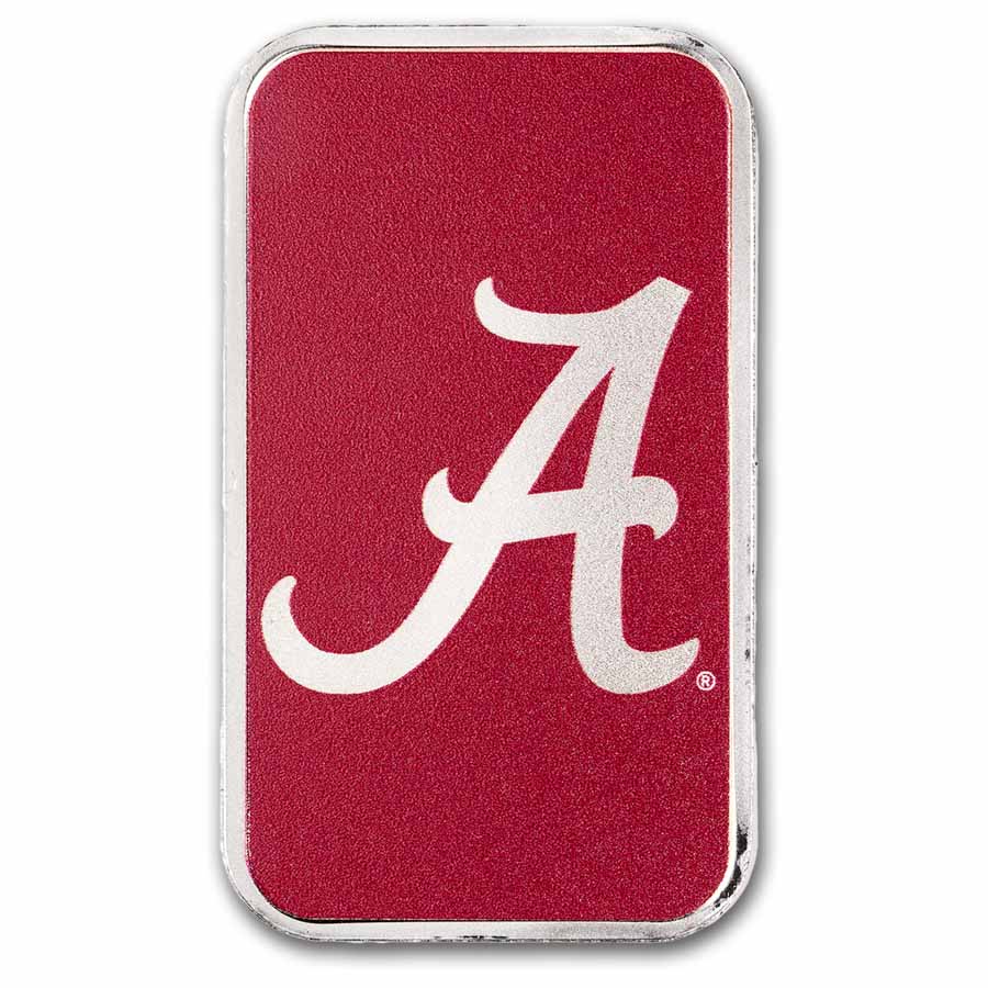 These colorized bars are ideal for giving to friends, family members or loved ones that appreciate the University of Alabama. These silver bars truly are a gift that lasts a lifetime with appeal. Add this beautiful 1 oz silver colorized bar to your cart today!