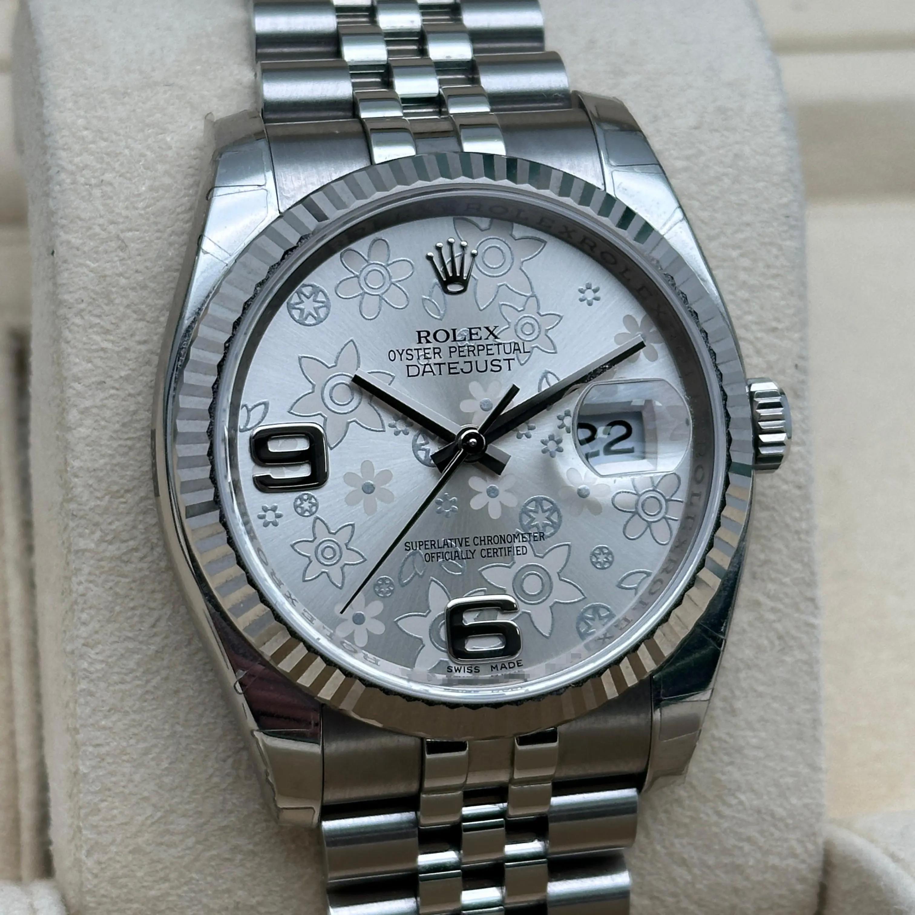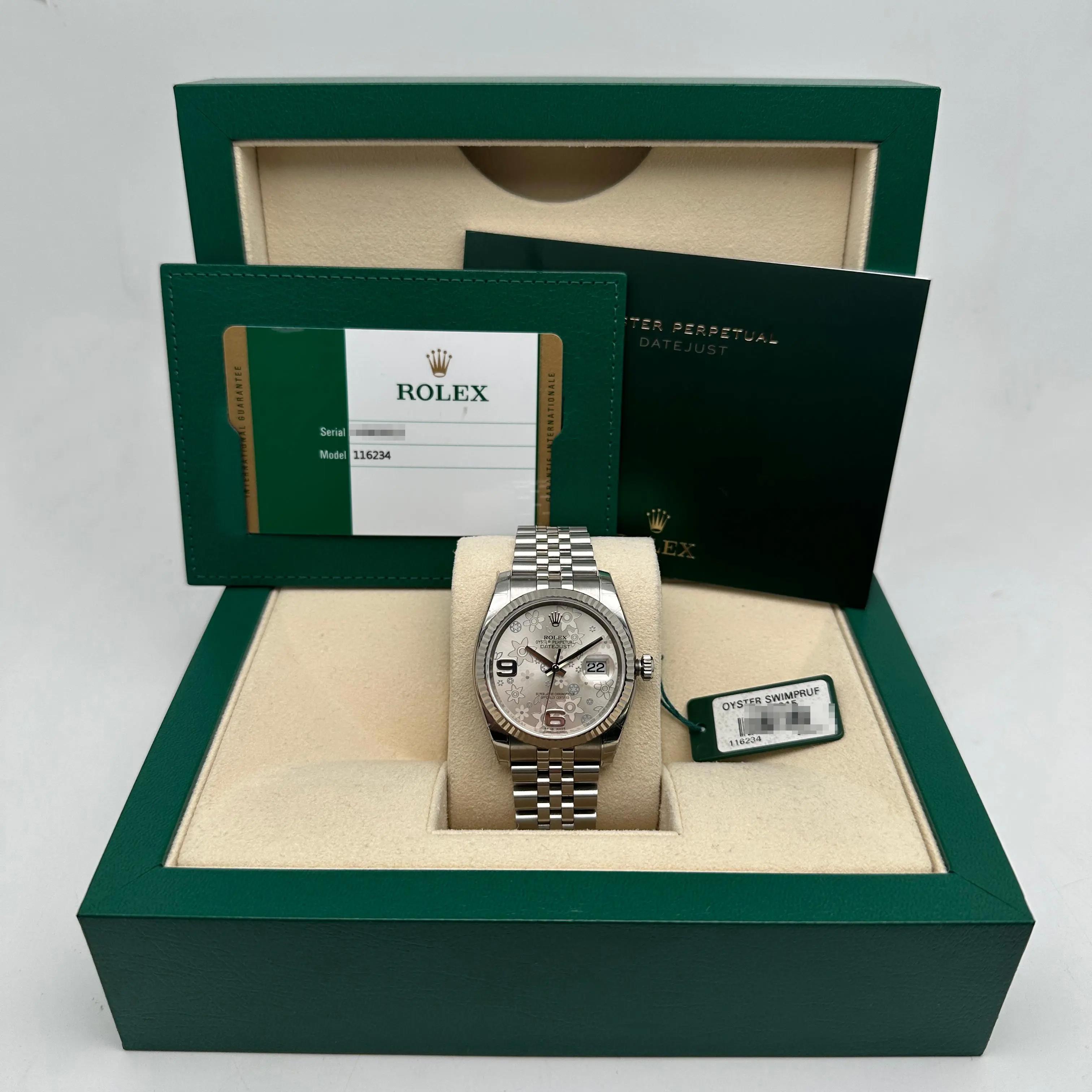 New Old Stock Rolex Datejust 36mm 116234 Steel Floral Dial Automatic Watch B&P