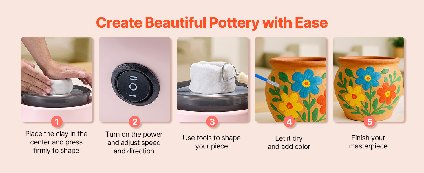Versatile Application: The pottery wheel for kids is ideal for home DIY fun, school art classes, or creative studios. It supports beginner to advanced projects, sparking artistic inspiration wherever it's used