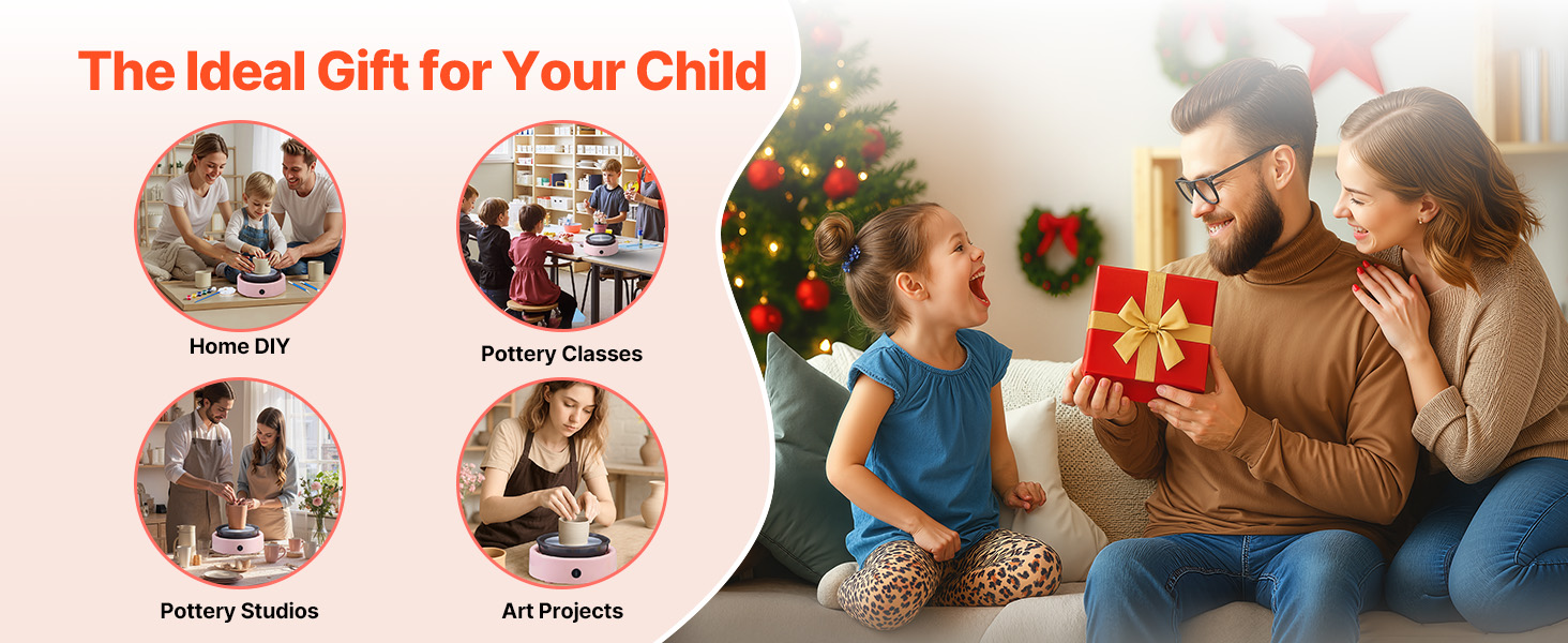 A Fun Gift Idea: When kids are restless at home, guide their energy into creativity with this special gift! This kids' pottery wheel kit transforms playtime into joyful crafting, making every creation a rewarding and imaginative experience