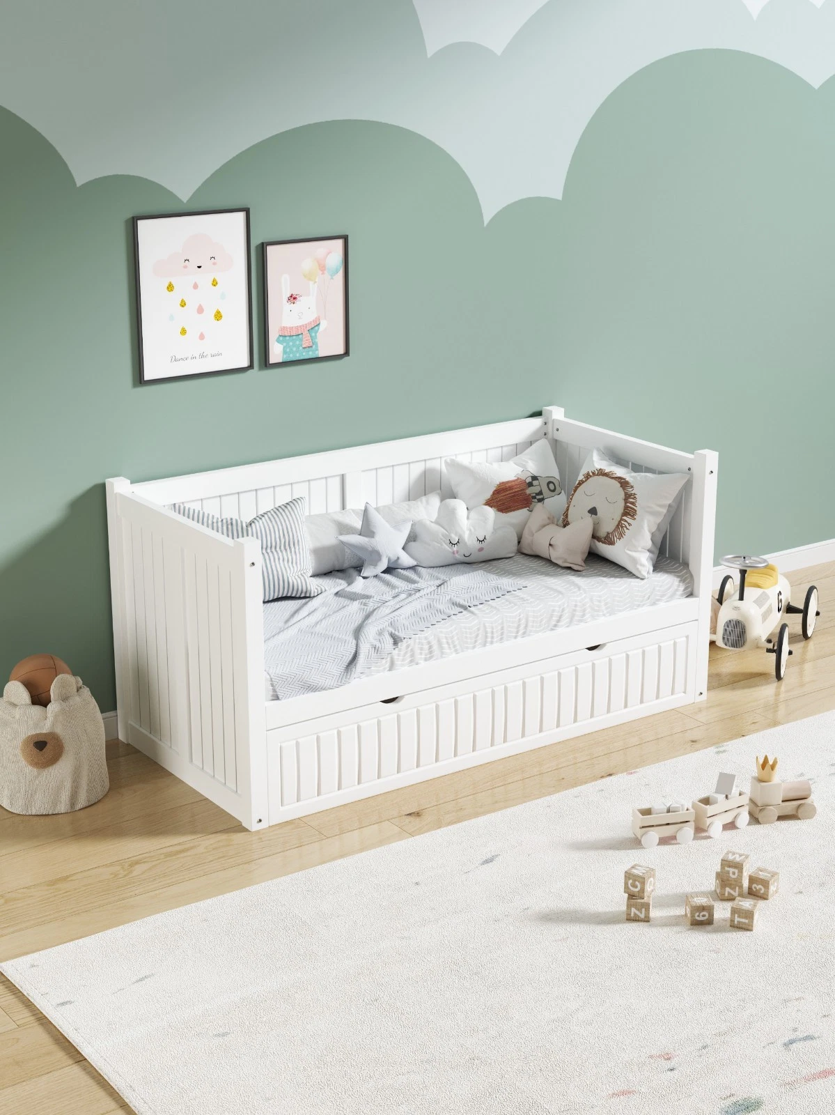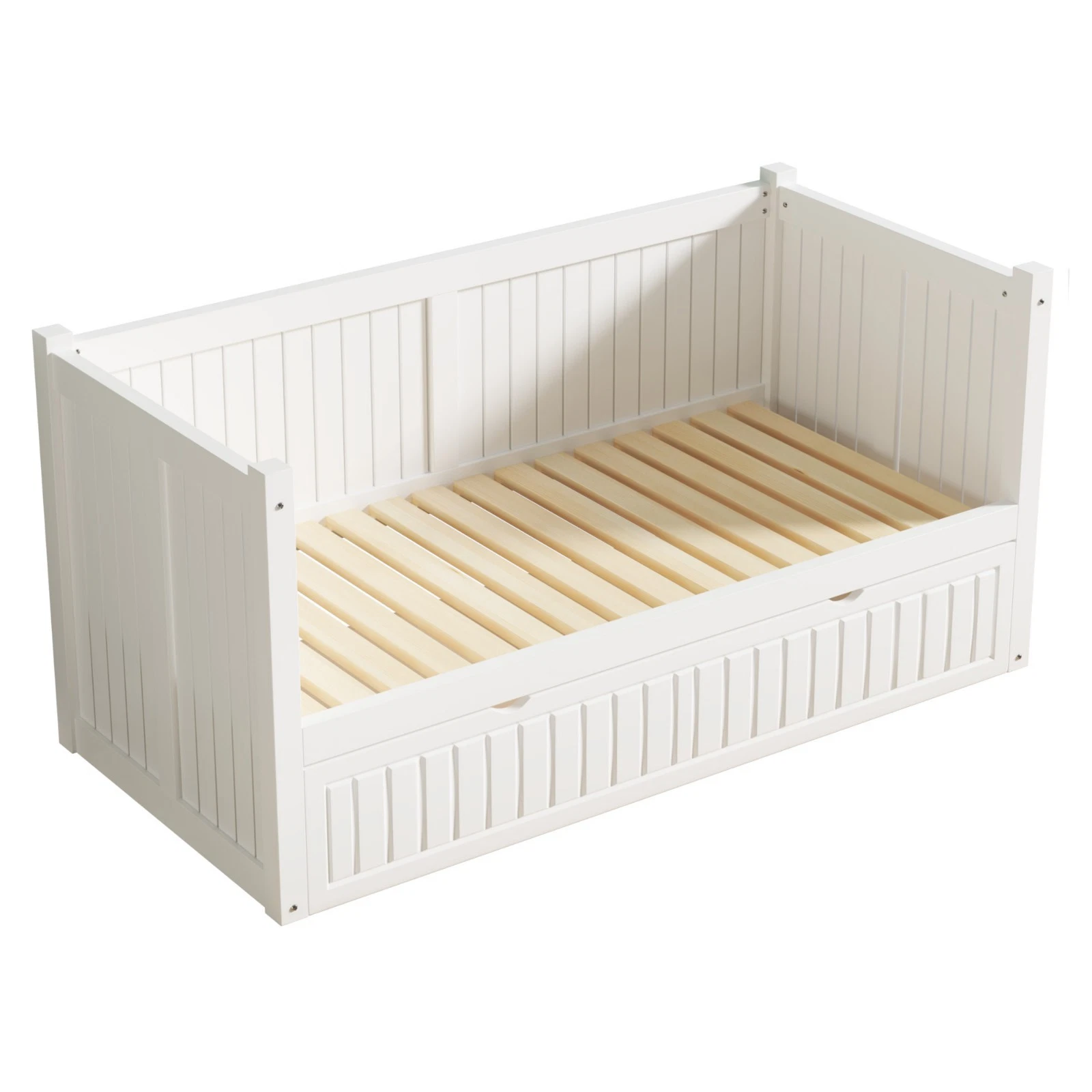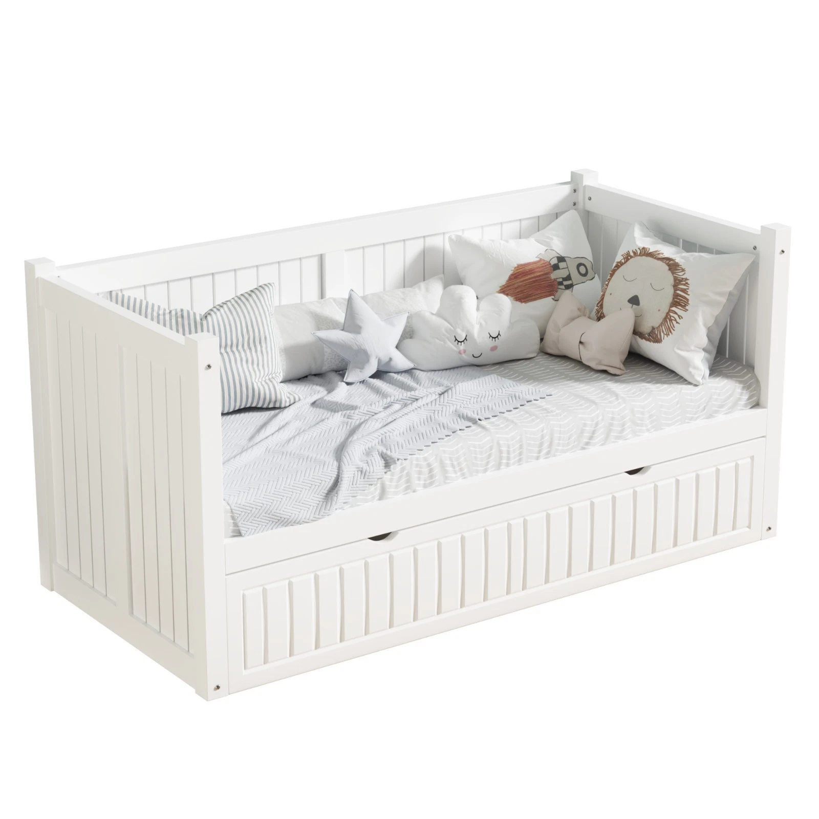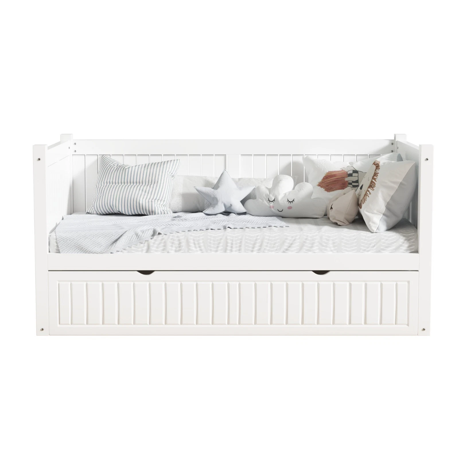 Crisp white wood– Elegant comfortable day bed frame with headboard, clean simple lines & neutral colour will compliment any bedroom interior. Finished in a smooth bright white non toxic paint.