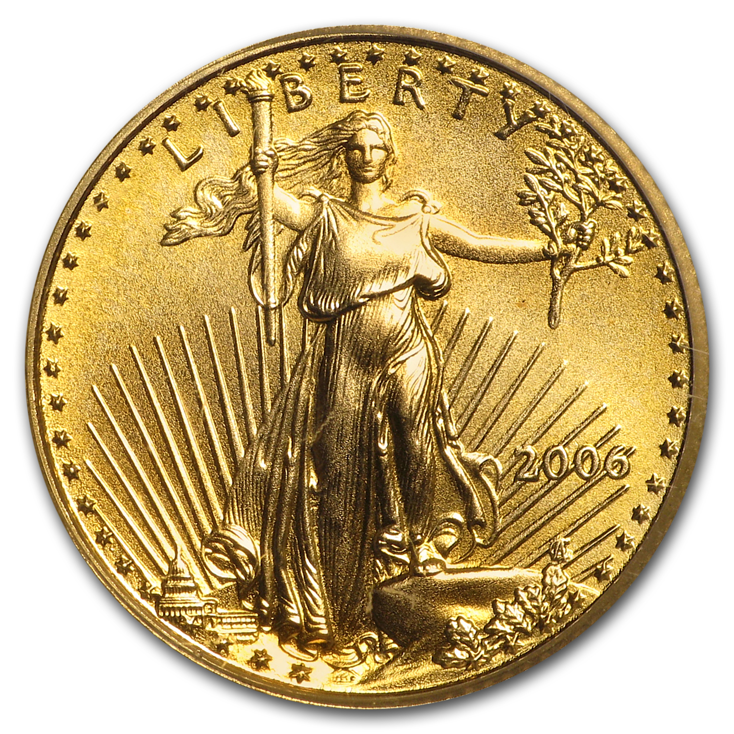 The Gold American Eagle has become the most popular Gold coin in the United States for its iconic design. Add this 2006 1/10 oz Gold Eagle to your cart today!