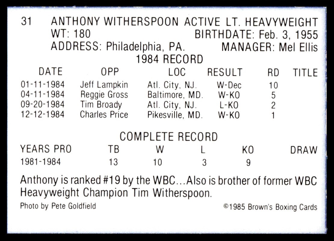 1985 Brown's Boxing NmMt Anthony WitherSpoon #31