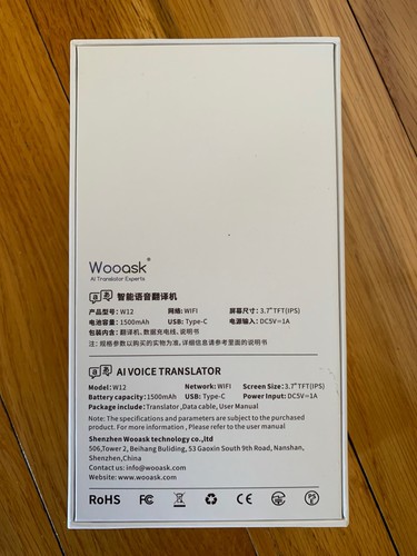 W12 Translator Device*1USB-A -- Type-C Charging Cable*1Protective Shell *1Lanyard *1User Manual*1