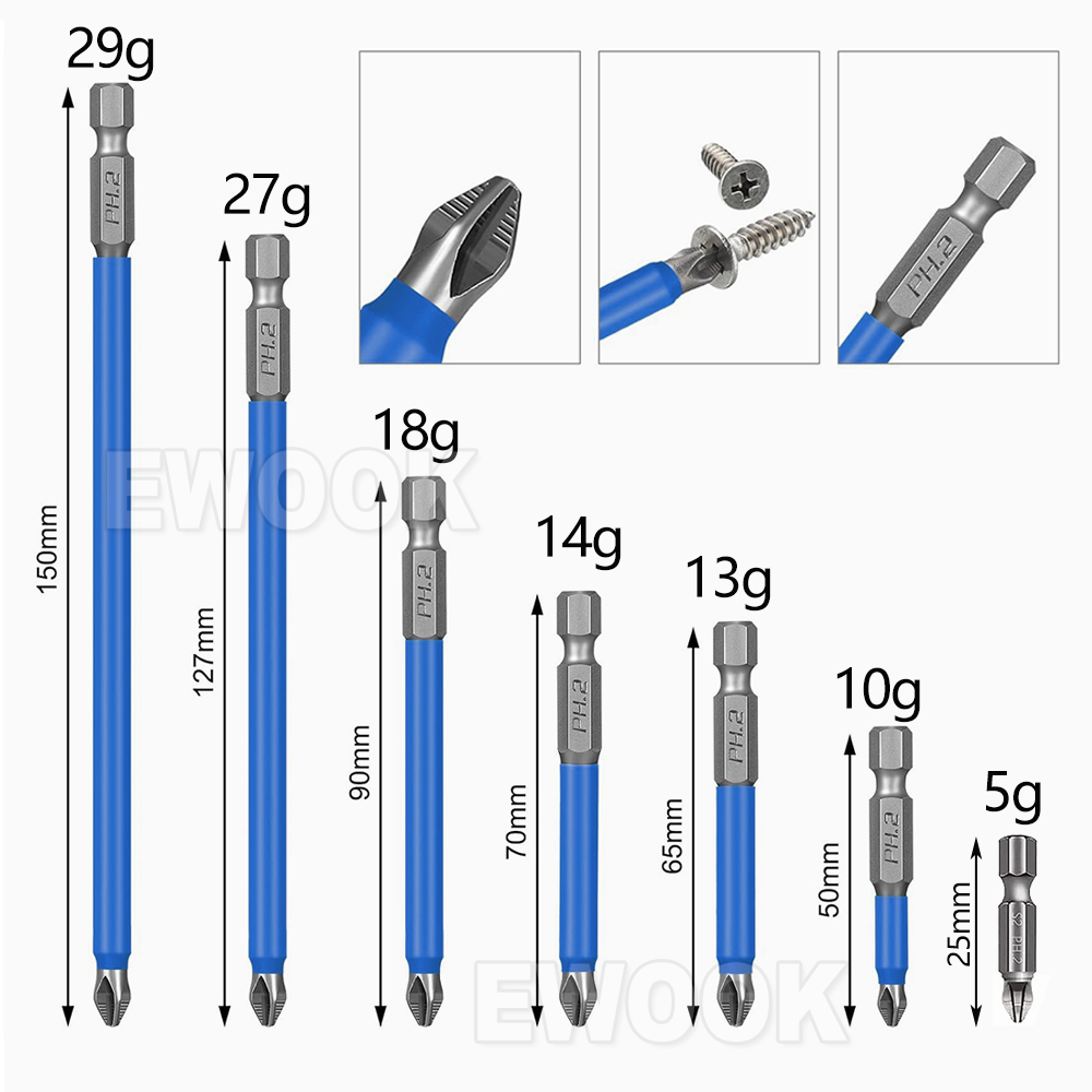 - 7/14pcs/Set PH2 Screwdriver Bits(25mm/50mm/65mm/70mm/90mm/125mm/150mm 1/2pc each size)