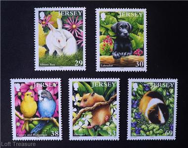 Mint Condition: The MNH loose stamps are backed by black card and covered with a plastic film from which they can easily be removed. This is housed in a folded card sleeve (as seen at top of photograph) Both the picture card sleeve and the inner card have two hole punches to the left side carried out by JERSEY POST OFFICE PHILATELIC BUREAU so that the pack can be stored in a binder.