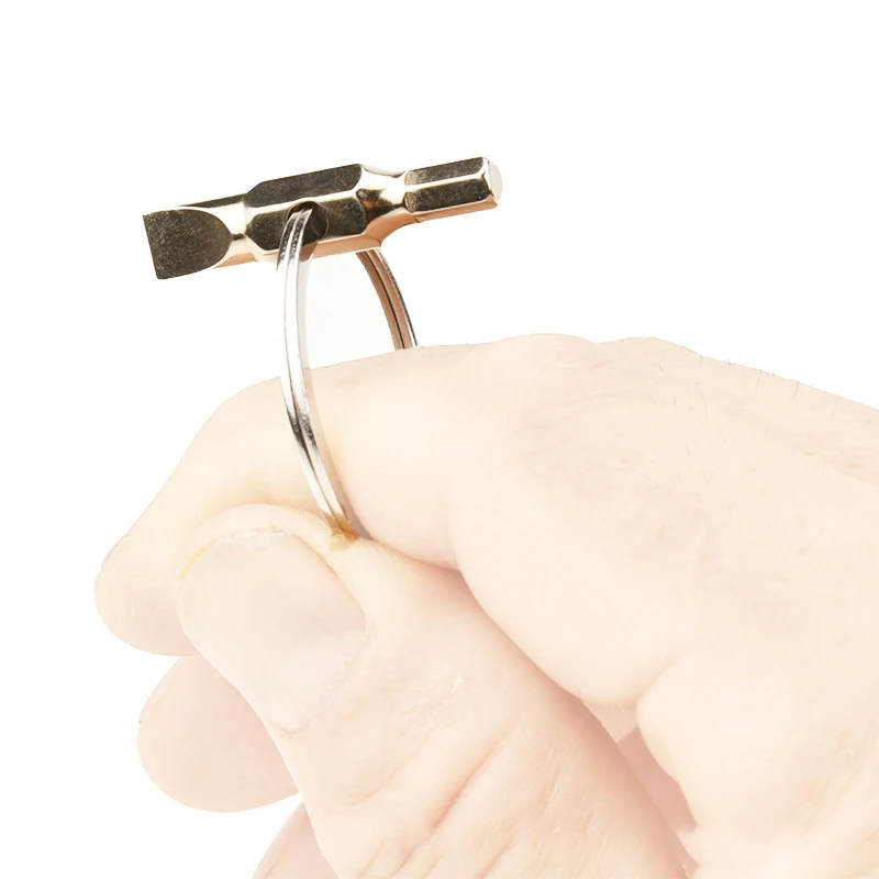 and on the other side is a basic flathead screwdriver to tighten or loosen most slotted screws.