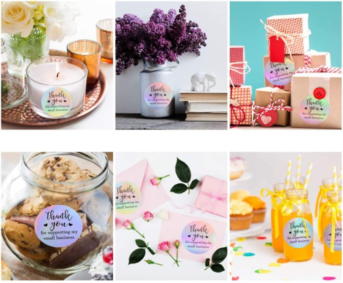 Our business roll stickers are designed with round shape, featuring rainbow colors and the color of the sticker surface can be changed under light, beautiful and attractive; 3.Each sticker is printed with letters, such as thank you and so on, which will show your appreciation to customers.