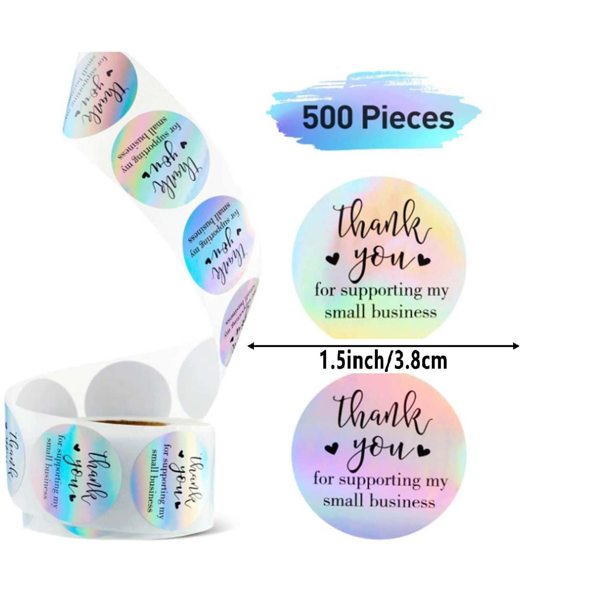 500 PCS 1.5'' Rainbow Stickers Thank you Roll Sticke for Boutiques Shops