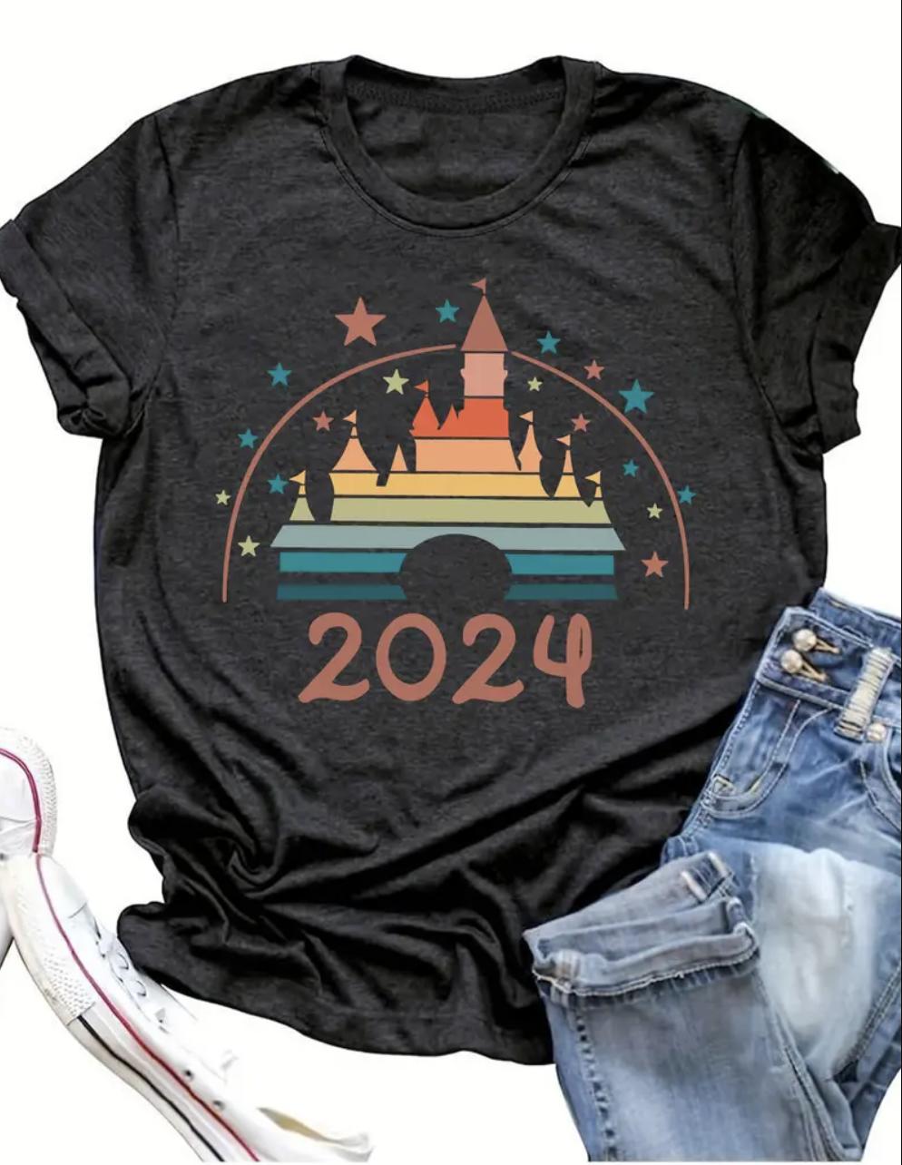 Disney Vacation 2024 Unisex Adult Castle Short Sleeve T-Shirt, Size Medium