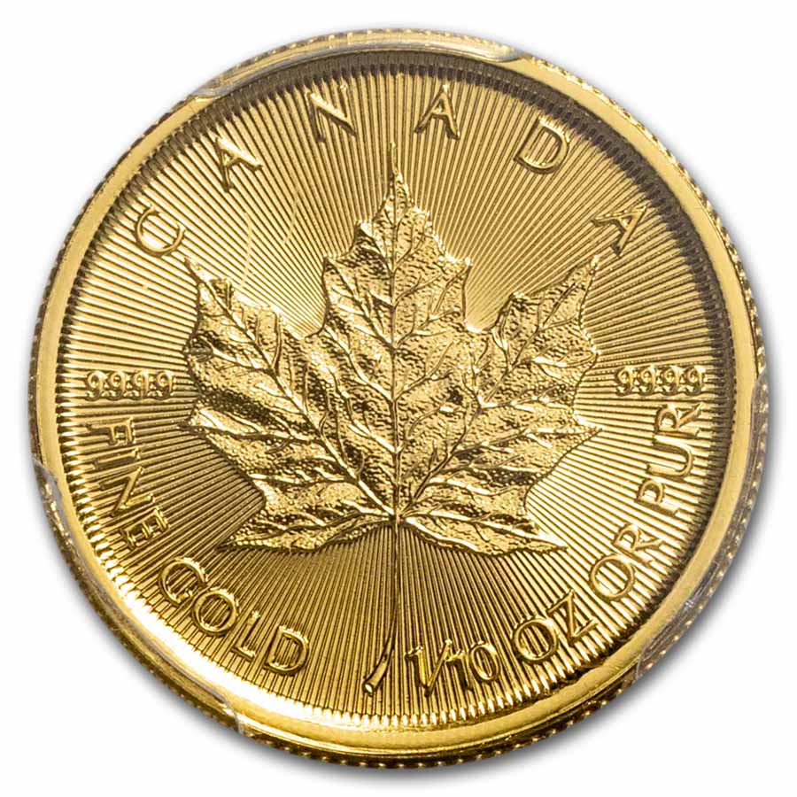 The Canadian Gold Maple Leaf coin is one of the most popular and highly respected gold bullion coins in the world. Its design is iconic and its purity is unrivaled. The coin began as .999 fine gold, but its purity was increased to .9999 in 1982. Whether you're new to investing in gold or an experienced collector, the Canadian Gold Maple Leaf coin is a great addition to any collection.