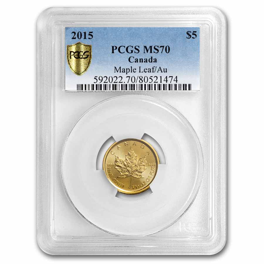 Fractional Gold Maple Leafs have added affordability on top of their iconic beauty and high purity. Add this graded 2015 1/10 oz Gold Maple Leaf coins to your cart today!