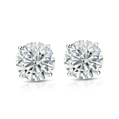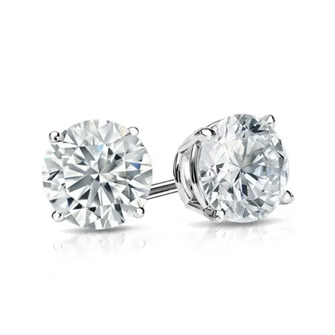 JeenMata 2 Carat Round Moissanite Adult Stud Earrings In 18K White Gold over Silver, Round 2 ct