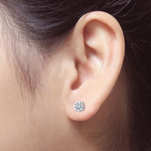 Make every day a cloud nine day with these 4 Prong 2 Carat Round Shaped Moissanite Solitaire Stud Earrings In 18K White Gold Plating Over Silver. Professionally handcrafted into a fine round cut by our experts in lapidary, these splendid moissanite earrings are composed of 2 carat moissanite on white gold plating over silver, and each side of the earrings weighs 1 carat. Special and non-traditional, these solitaire stud earrings is well-suited for those who are not quite into normal lifestyle