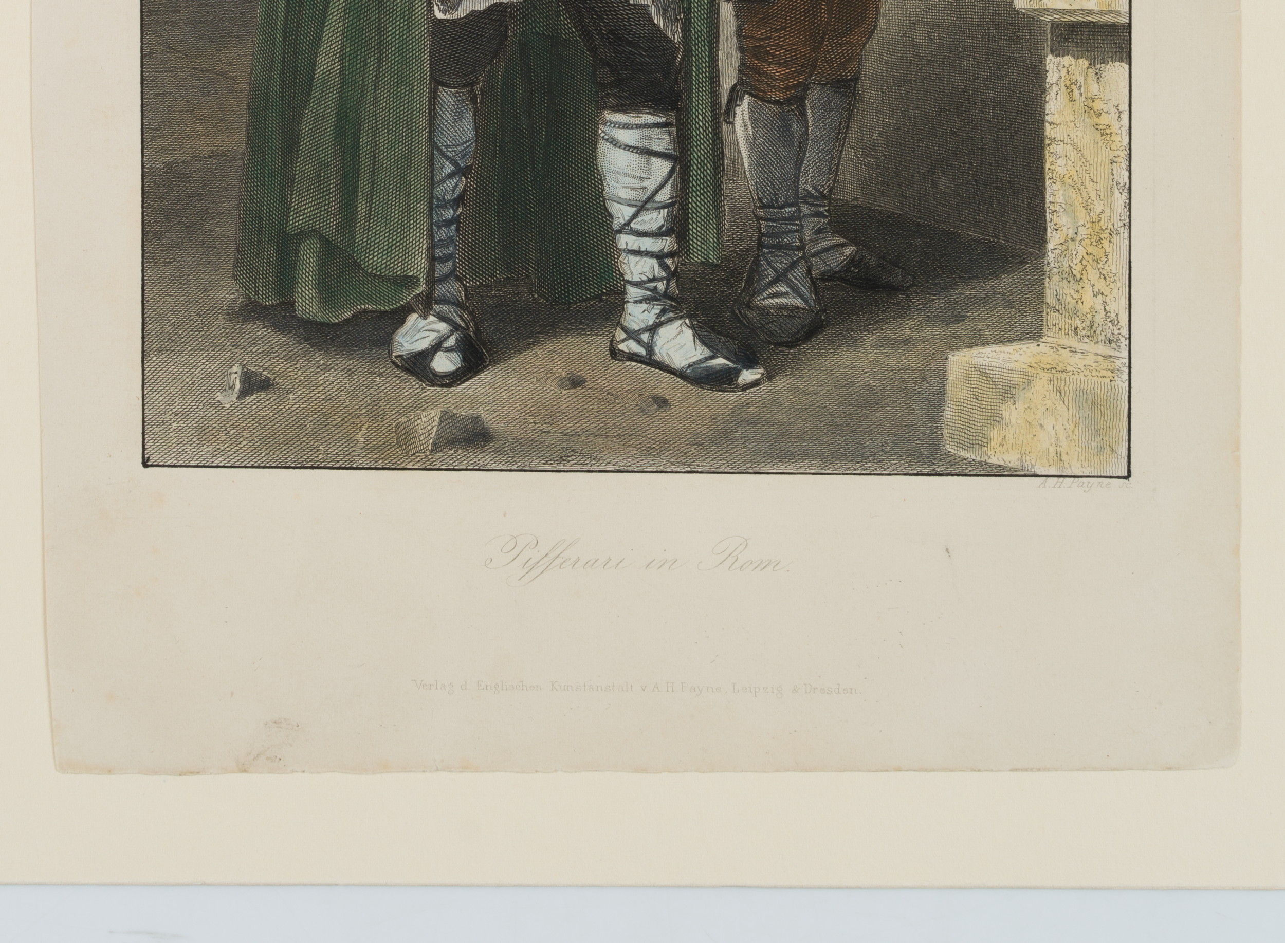 - Inscription: Lower right signed in the printing plate: "A.H. Payne sc". Lower middle inscribed in the printing plate: "Pifferari im Rom".