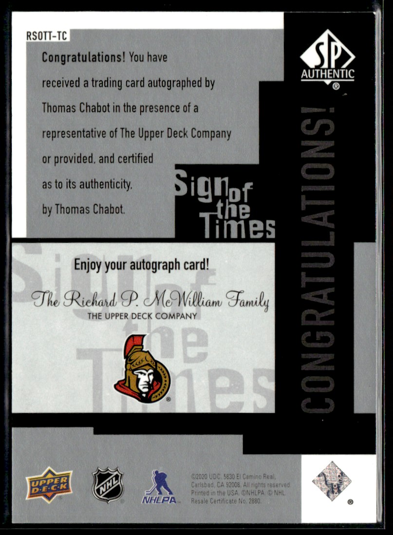 2020-21 Upper Deck SP Authentic SS-TC Thomas Chabot