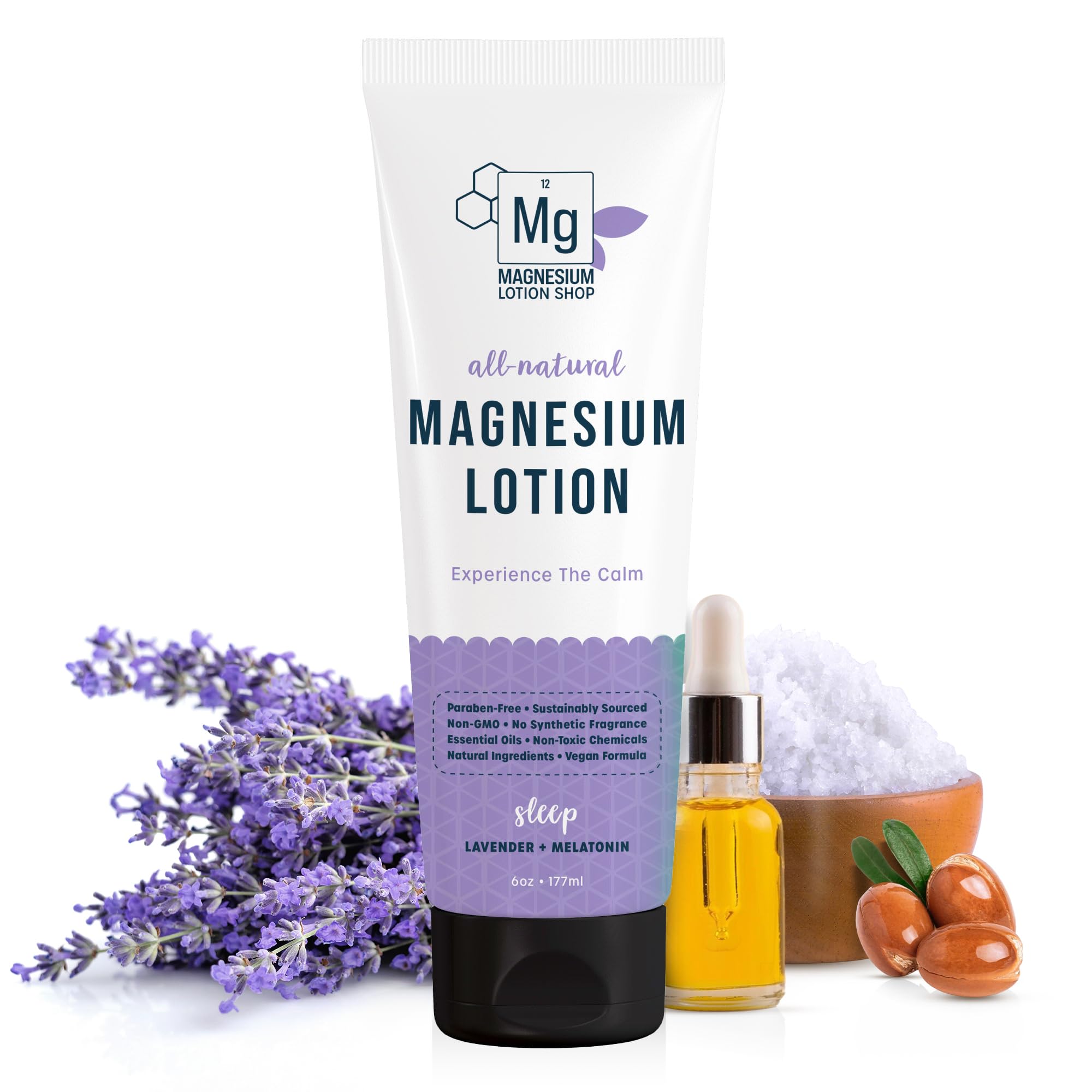 Our Lavender Magnesium Lotion is designed to support relaxation and skin hydration with a premium blend of high-quality ingredients. Infused with Zechstein magnesium, this luxurious body lotion helps moisturize and nourish while providing a calming lavender aroma. A gentle combination of shea butter and argan oil delivers deep hydration, leaving your skin feeling soft and smooth without a greasy residue. The lightweight, fast-absorbing formula makes it a perfect addition to your daily self-care routine. Made with plant-based, sustainably sourced ingredients, this vegan formula is free from artificial fragrances, parabens, and toxic additives. Feel good about using a product that is thoughtfully crafted for both you and the environment. To use, simply massage a small amount onto your feet, legs, arms, or back as part of your skincare routine. Each teaspoon contains 250mg of pure Zechstein magnesium for a soothing and nourishing experience.