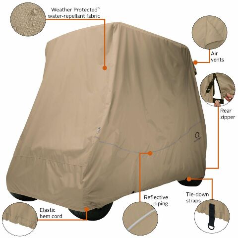 Classic Accessories Fairway 2-Passenger Golf Cart Quick-Fit Cover, Light Khaki