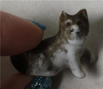 Here is a great vintage miniature Bone China ceramic hand painted Husky Looking small dog does not stand Dog Figurine. It is Awesome. Does not stand up-SEE ALL PHOTOS. It measures about 3/4 inches tall by about 1 inches wide. Grab this great Collectible while you still can it will not last long.