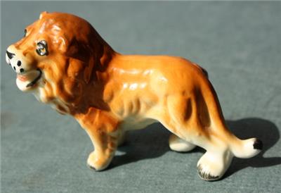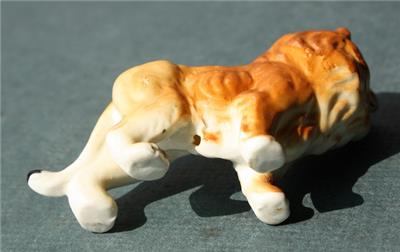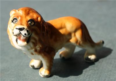 Here is a great vintage miniature Ceramic Bone China hand painted unmarked Lion with mouth open standing Great Lion Figurine. It is Awesome. Great Used Condition-SEE ALL PHOTOS. It measures about 2 inches tall by about 3 inches wide. Grab this great vintage collectibles while you still can it will not last long.