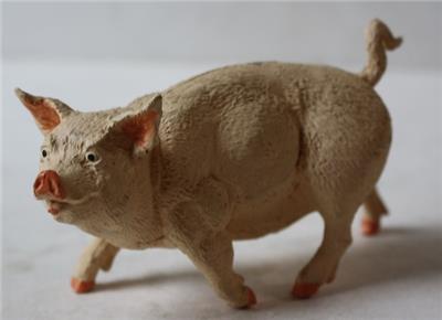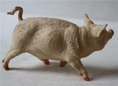 Here is a great Hard Rubber 1981 Safari Ltd Pig Standing with curly tail Figurine. It is So Cute. It is in Good Used Condition! It is marked on bottom-SEE ALL PHOTOS. It measures about 2 1/4 inches tall and about 4 inches long. Grab this great vintage collectible while you still can it while it last long.
